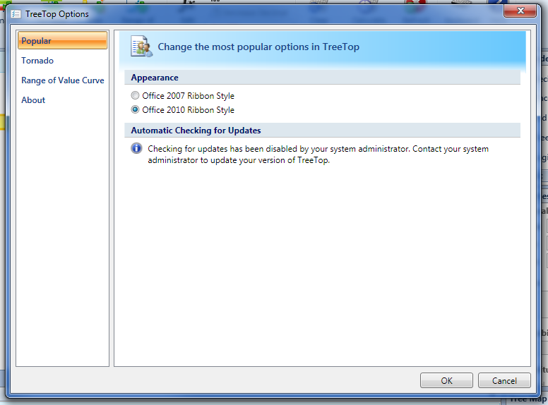 The automatic update checking options can be found under TreeTop Options --> Popular.