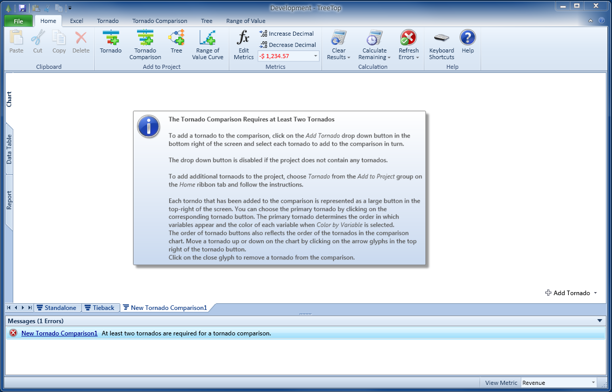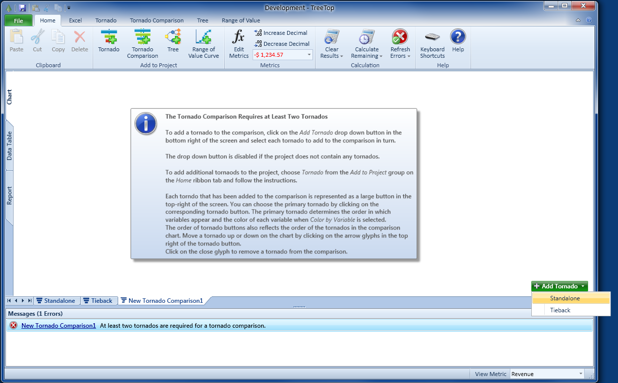 Click on the Tornado Comparison button, which is located in the Add to Project section on the Home ribbon tab.